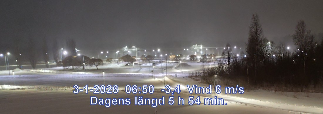 -4° C Vind 6 m/s Mulet och något snö Känns som-11° Lufttryck 990 hPa Daggpunkt-4° Fuktigh 92 % Sikt 1252 m Soluppgång 08:57 Solnedgång 14:52 Dagens längd 5 h 54 min.