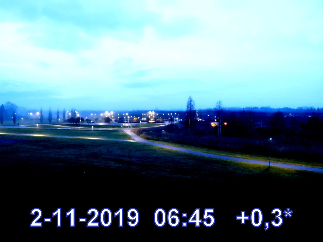 +1 °C Vind 0,0 m/s Känns som +1° Daggpunkt +1° Fuktighet 98.6% Sikt 400 m Soluppgång 07:16 Solnedgång 15:49 Dagens längd 8 h 33 min.