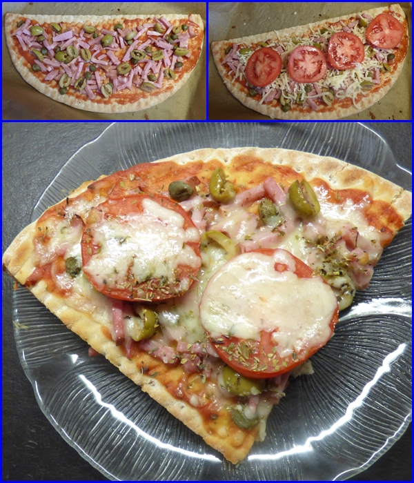 När jag kom hem så gjorde jag en Hönöpizza igen,den förra blev ju jättegod,nu blev det tomatsås,skinka,chilioliver,kapris,tomat,rivost och på topp oregano..Blev riktigt smarrigt även denna gång.
