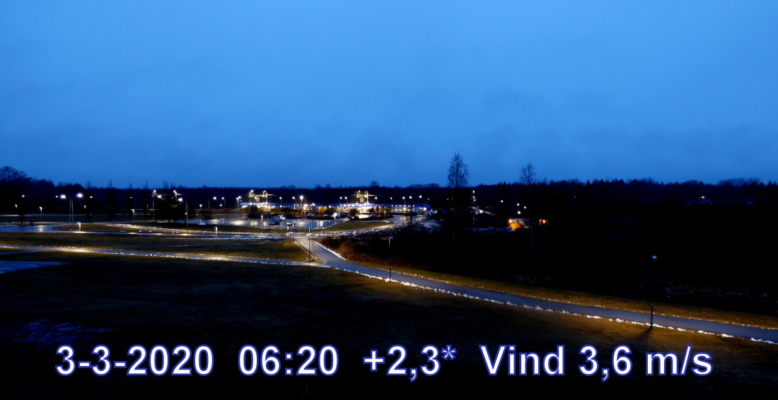 +1 °C Vind 3,6 m/sMulet och något snö Känns som -3° Daggpunkt +1° Fuktighet 98.6% Sikt 5 km Soluppgång 06:42 Solnedgång 17:23 Dagens längd 10 h 41 min.