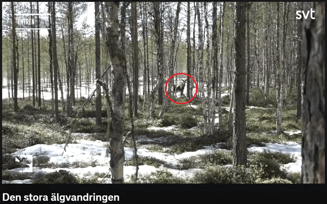 Jippii,idag fick jag se första älgen vandra förbi kameran som är placerad på plats som kallas ”Entrén”.Det var 2 stycken Tjur eller Ko vet ej.
