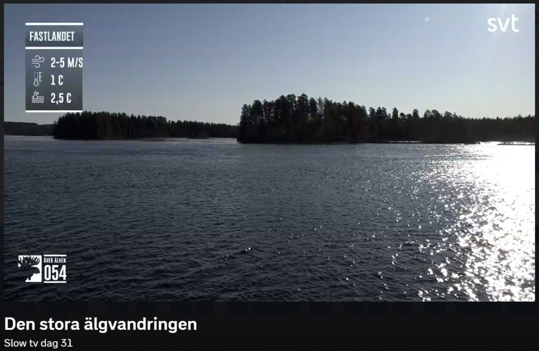 Kollade i morse 07:30 till då hade 54 älgar simmat över älven för att komma till sina sommarbetesområden,om några veckor så ska det födas årets kalvar.