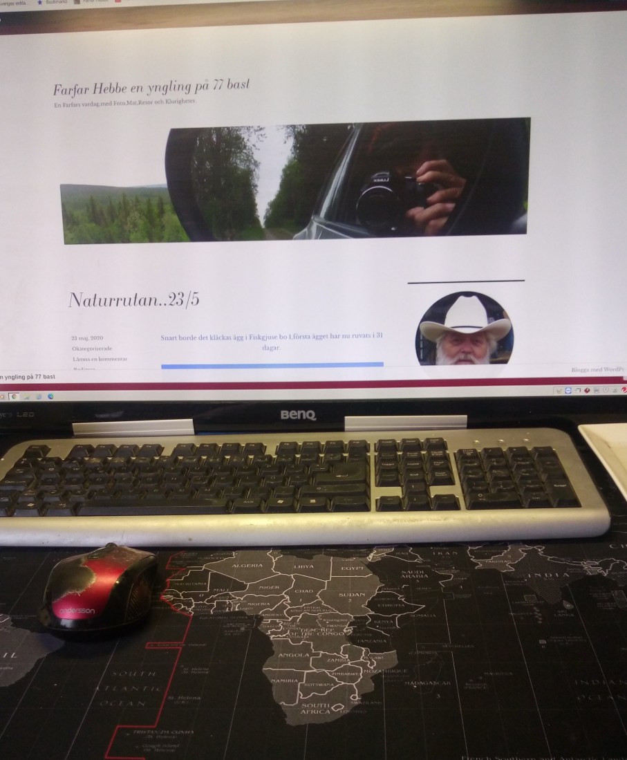 Uppgradering av datahörnan med en nästan heltäckande ”Musmatta” blev kanonbra,jag hade köpt en matta med måtten 90×40 cm,perfekt.