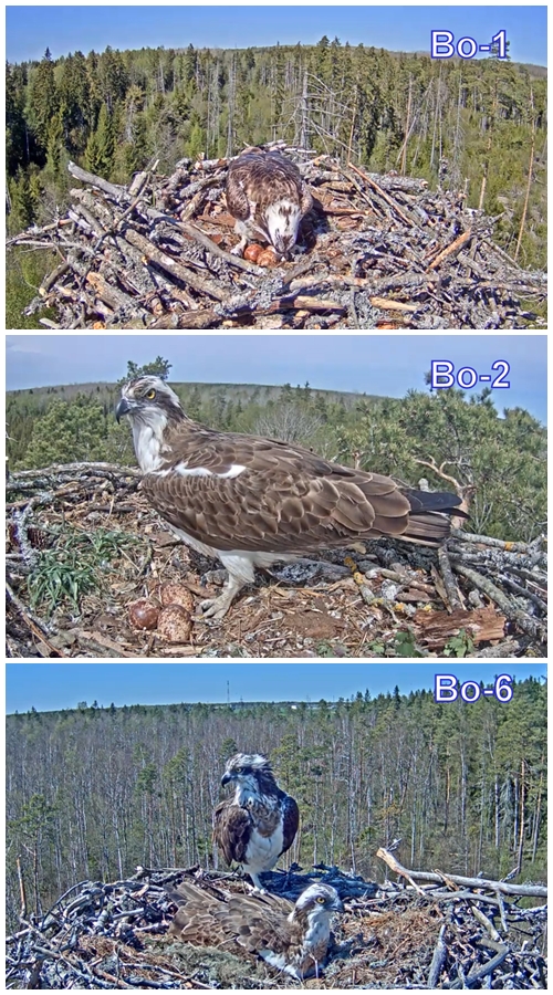Mamma stork ligger mestadels av tiden stilla på sina ägg,jag har sett 2 st. Fiskgjusarna turas om att ruva,det måste vara nära nu till kläckning. Örnungarna i bo 4 småkivas lite,Elakingen till höger är en smågrinig rackare,Spejaren är lugnare. Örnungen i bo 5 ligger lite oroväckande nära kanten på boet,den är ju inte så stabil i sin rörelse.