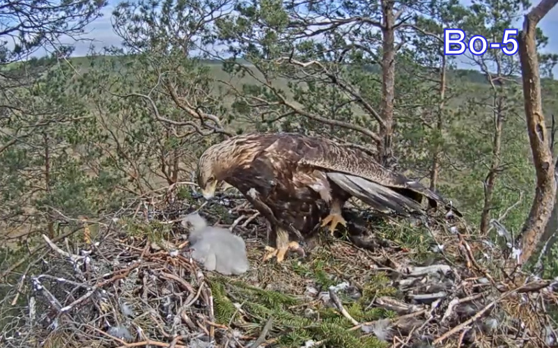 Havsörnen i Bo 4 mamma örn sitter på en gren intill boet,Elakingen vilar,Spejaren han har koll.