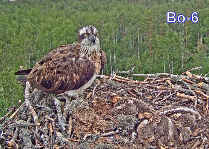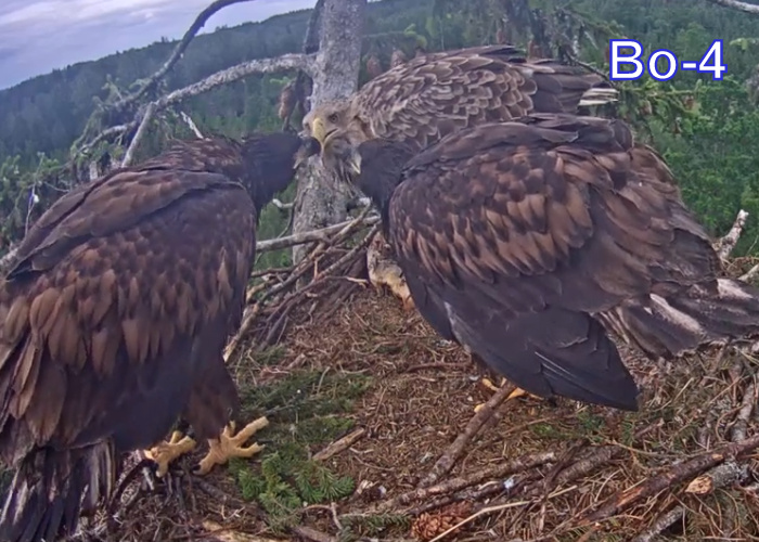 Örnungarna i Bo 4 är nu nästan lika stora som föräldrarna,när ingen av föräldrarna är i boet då äter dom själva,men om någon av dom är på plats,då vill dom hellre bli matade