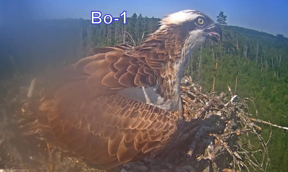 Havsörnsungarna i Bo 4 är nu nästan fullstora,det är inte lätt att komma undan solen i boet,dom flämtar mycket.