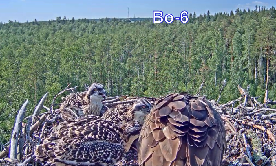 I Gjusebo 1 och 6 där är det full aktivitet,mamma gjuse i Bo 1 breder ut sig för att ge ungarna lite skugga under sina vingar.I Bo 6 har mamma fullt sjå med att mätta sina 3 ungar,att det är varmt hör man på ungarnas flämtande.