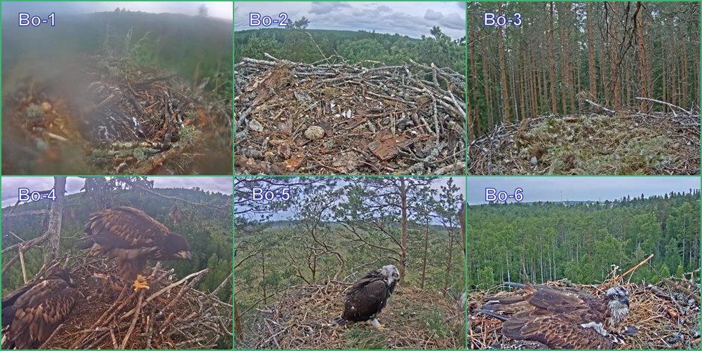 Jag gjorde ett svep till fåglarna i Estland och Lettland för en stund sedan.Ser att Bo 1 har regn o rusk,,Bo 2 verkar övergivet har inte sett något som rört sig på några dagar,,Bo 3 övergavs ju för länge sedan,,Bo 4 här har ungarna vuxit,är nu lika stora som sina föräldrar,,Bo 5 där har jag inte sett någon av föräldrarna på många dagar,ungen ropar hela tiden,måste vara hungrig,,Bo 6 här brer mamma gjuse ut sina vingar som skydd över sina 3 små..