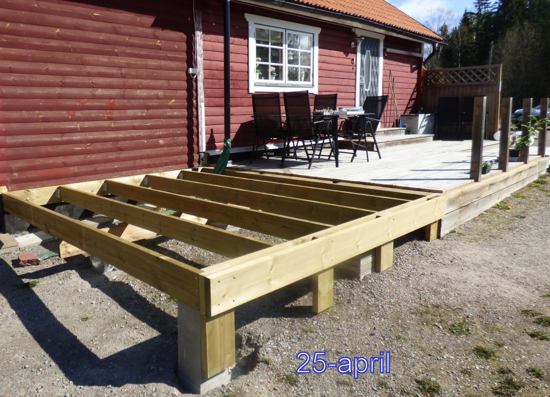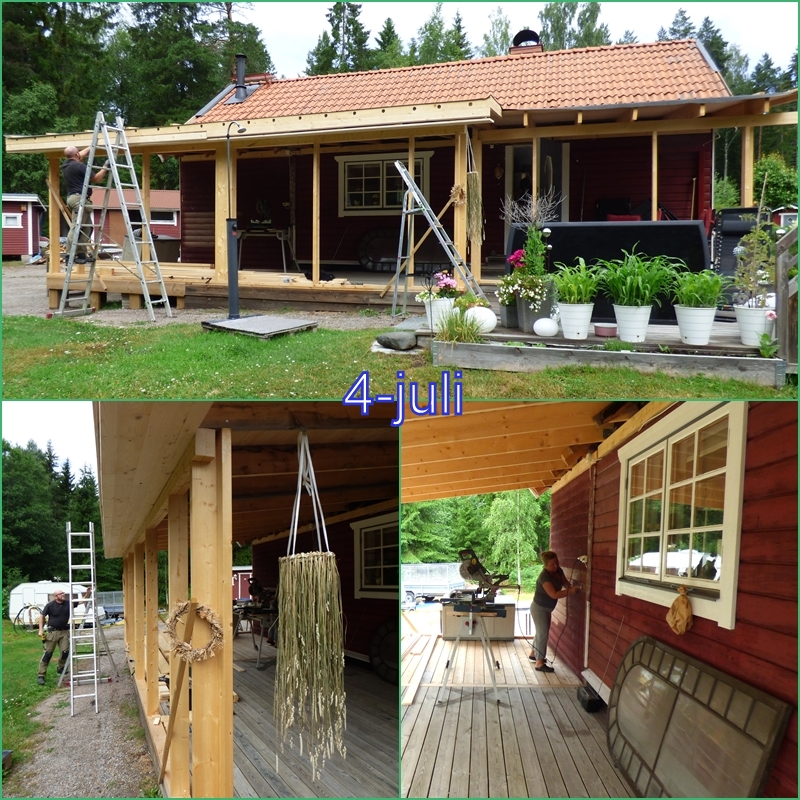 Jag var väl mest nyfiken på hur långt Tony och Lotta kommit på verandabygget som påbörjades i slutet av april.