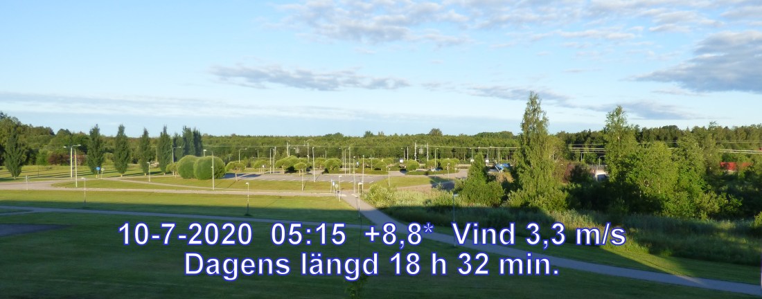 +12 °C Vind 3,3 m/s Känns som +11° Daggpunkt +8° Fuktighet 78.6% Soluppgång 03:39 Solnedgång 22:11 Dagens längd 18 h 32 min.