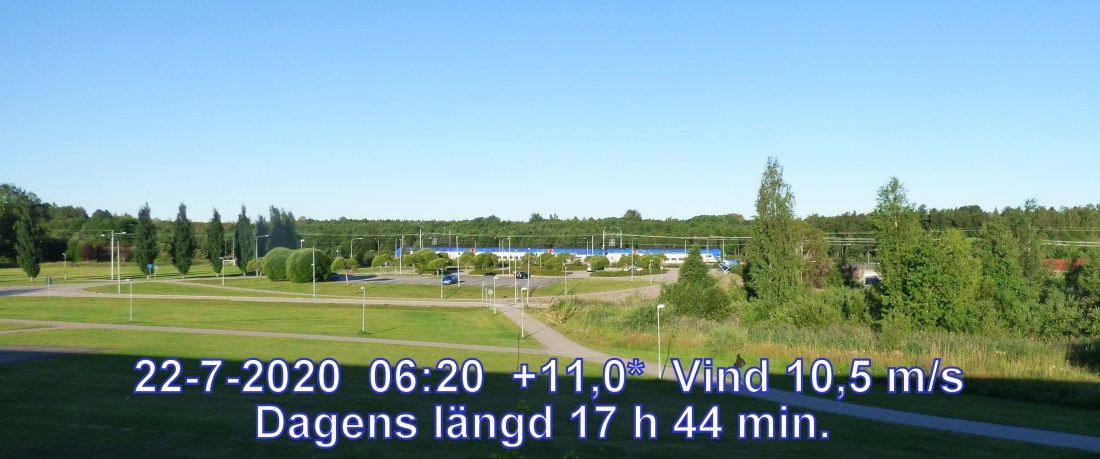 +13 ° CVind 10,5 m/s Känns som +10° Daggpunkt +8° Fuktighet 71.6% Soluppgång 04:04 Solnedgång 21:48 Dagens längd 17 h 44 min.