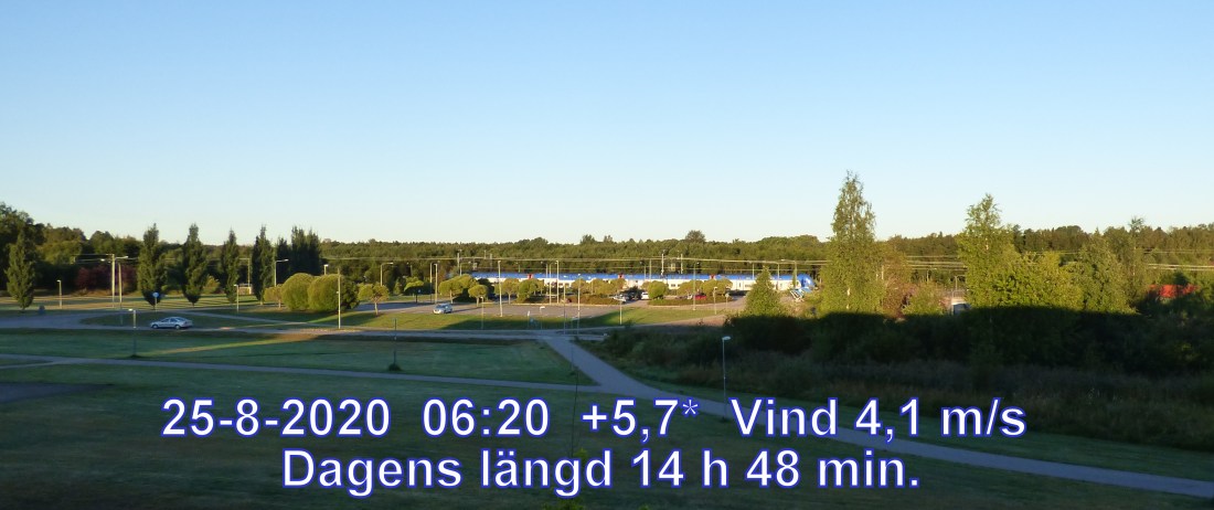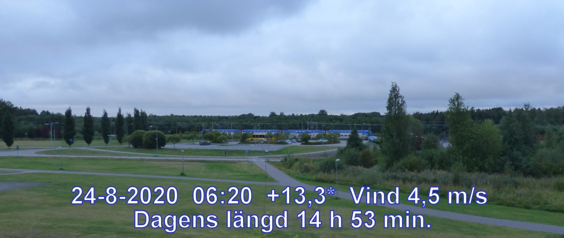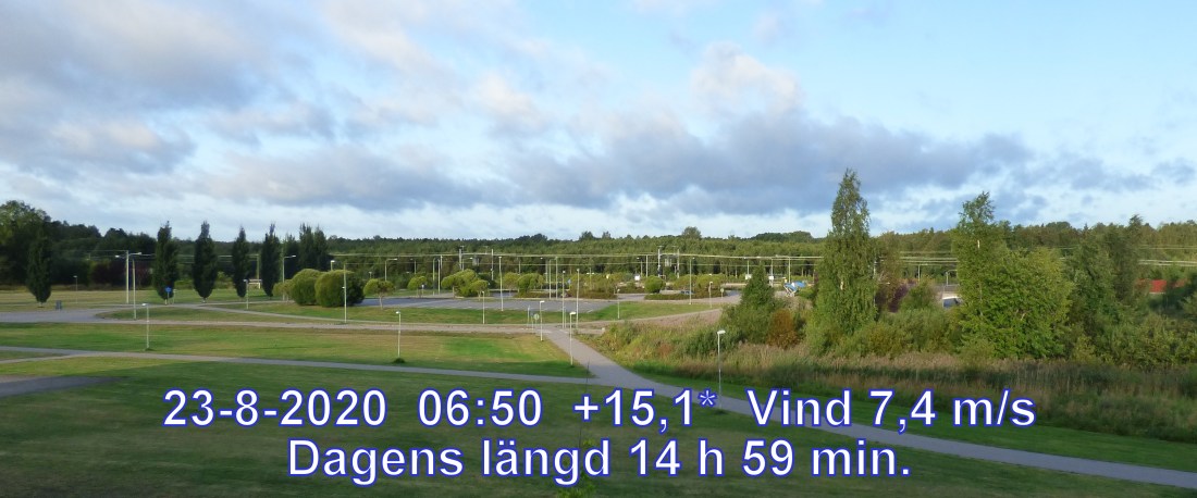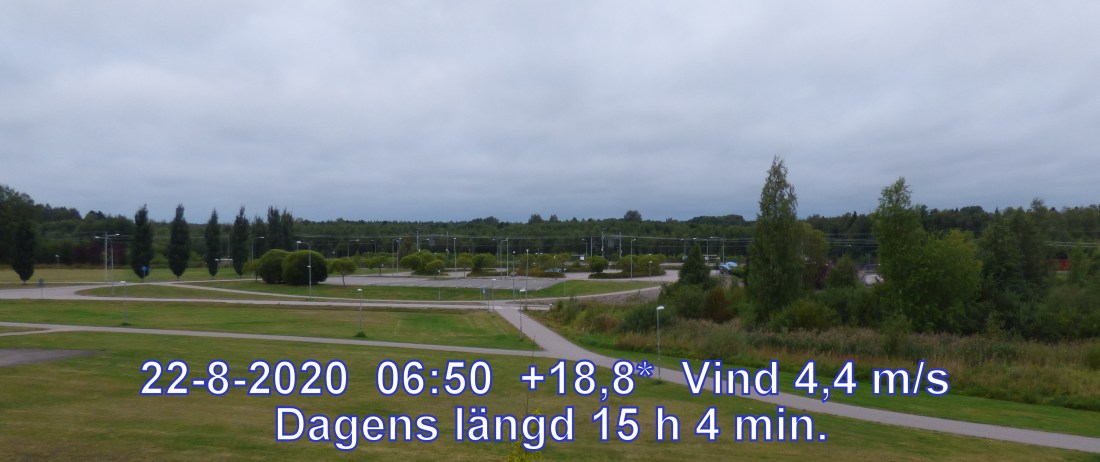 +19 °C Vind 4,4 m/s Känns som +20° Daggpunkt +17° Fuktighet 89.3% Soluppgång 05:20 Solnedgång 20:24 Dagens längd 15 h 4 min.