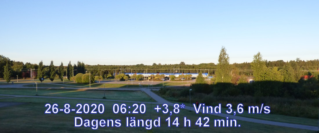 +14 °C Vind 3,6 m/s Känns som +13° Daggpunkt +9° Fuktighet 71.8% Soluppgång 05:30 Solnedgång 20:12 Dagens längd 14 h 42 min.