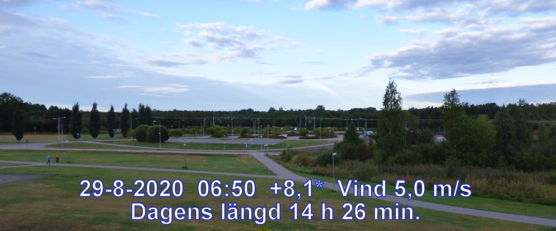 +13 °C Vind 2,0 m/s Känns som +13° Daggpunkt +10° Fuktighet 82.5% Soluppgång 05:35 Solnedgång 20:06 Dagens längd 14 h 31 min.