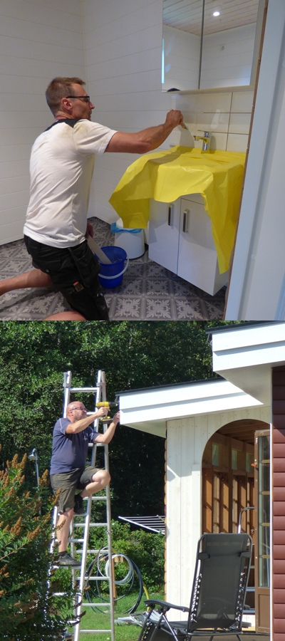 Fikade hos syster yster,där var det fogning av kakel på gång,grannen Tony höll på med plåtarbete på utbygget..