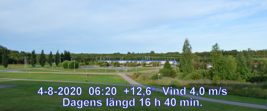 +14 °C Vind 4,0 m/s Känns som +13° Daggpunkt +11° Fuktighet 83.2% Soluppgång 04:35 Solnedgång 21:15 Dagens längd 16 h 40 min.