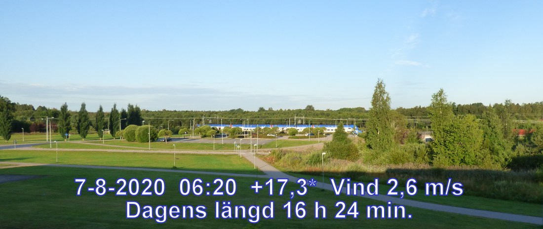 +17 °C Vind 2,6 m/s Känns som +17° Daggpunkt +16° Fuktighet 94.4% Soluppgång 04:43 Solnedgång 21:07 Dagens längd 16 h 24 min.