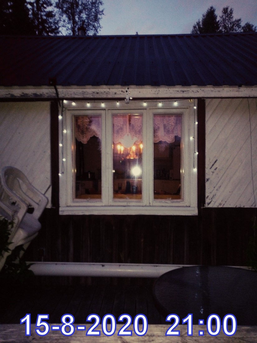 Jag hade med en liten ljusslinga solcelldriven som jag satte upp runt fönstret,såg riktigt fint ut.