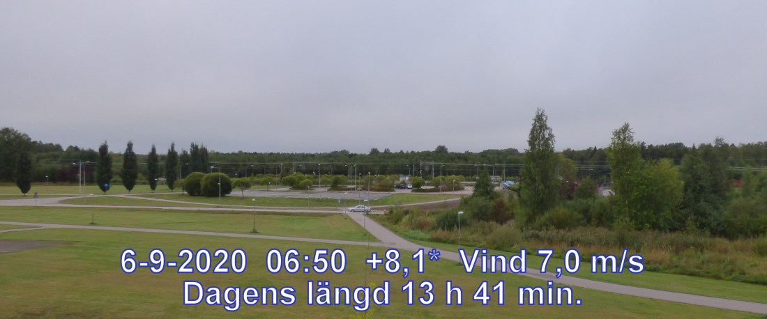 +11 °C Vind 7,0 m/s Känns som +8° Daggpunkt +10° Fuktighet 91.7% Soluppgång 05:57 Solnedgång 19:38 Dagens längd 13 h 41 min.