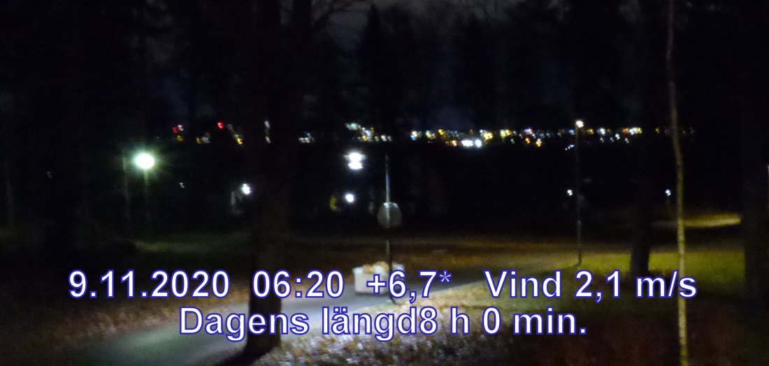 +7 °C Vind 2,1 m/s Mulet, men troligen uppehåll Känns som+6° Lufttryck 1026 hPa Daggpunkt+6° Fuktighet 93.3% Sikt 10 km Soluppgång 07:32 Solnedgång 15:32 Dagens längd8 h 0 min.