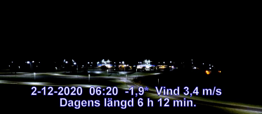 0 °C Vind 3,4 m/s Soluppgång 08:33 Solnedgång 14:45 Dagens längd 6 h 12 min.