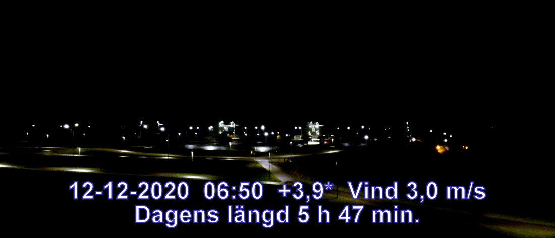+4 °C Vind 7,7 m/s Soluppgång 08:54 Solnedgång 14:37 Dagens längd 5 h 43 min.
