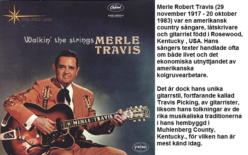 Merle Travis valdes in 1977 han var en enastående gitarrist med en för dåtiden helt ny teknik,en teknik som Chet Atkins anammade med framgång.