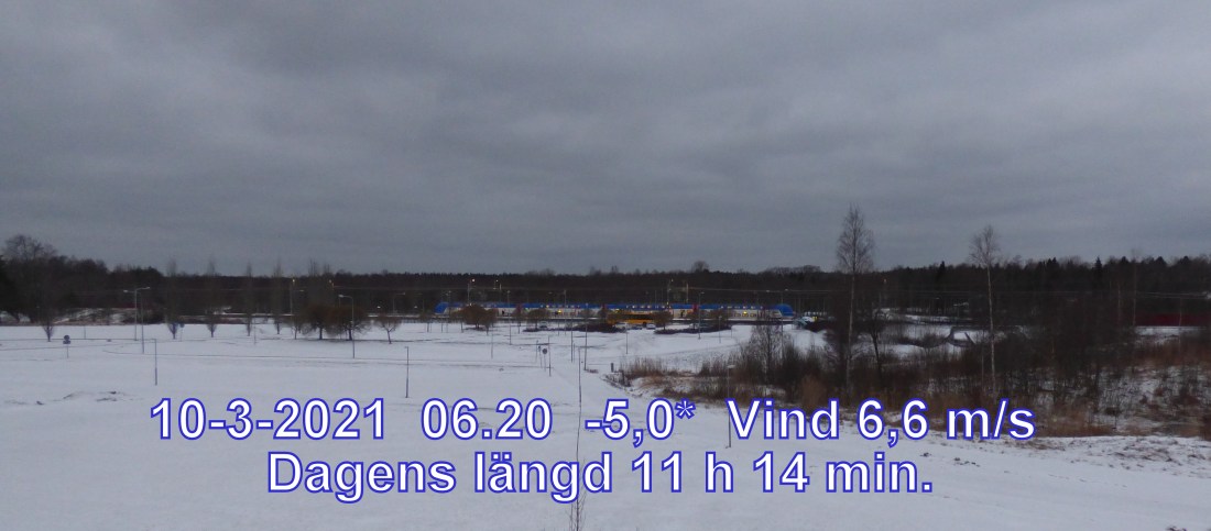 -4 °C Vind 6,6 m/s Soluppgång 06:24 Solnedgång 17:38 Dagens längd 11 h 14 min.