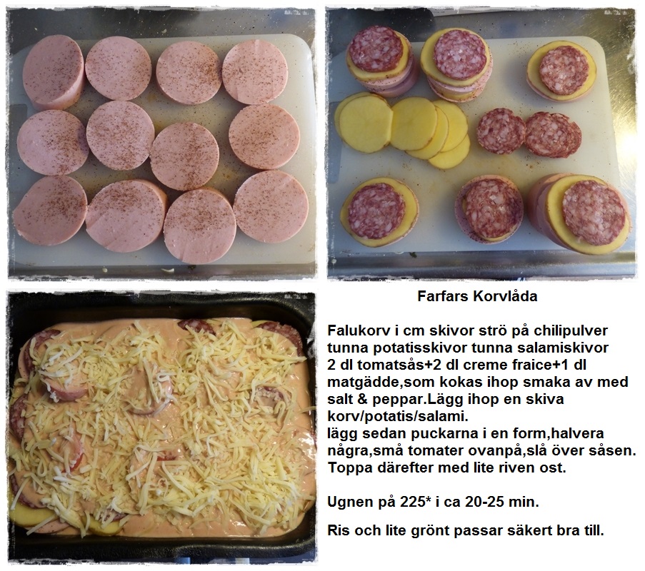 Ja det måste jag säga,”Farfars Korvlåda” blev mer lyckad än jag kunde tro när jag började med de råvaror jag hade i planen..Med ris och lite grönt Toppen.