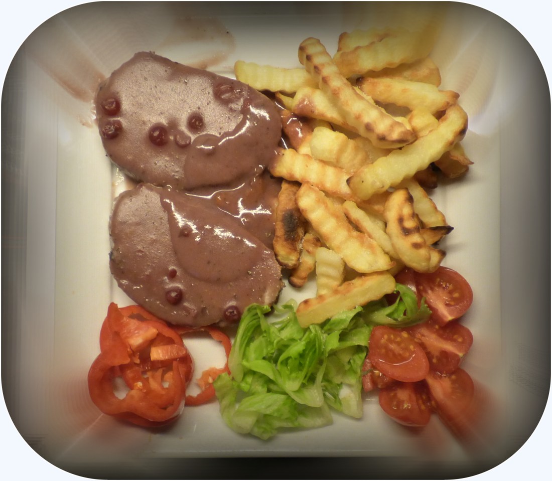 Körde en bit skinkstek i ugnen på låg värme ca 150* till innertemp 68 grader,fixade en lingonsås,som inte blev någon höjdare,kanske e 5:a på en 10 skala..Pommes och lite grönt..I glaset den röda gentlemannen från Australien..