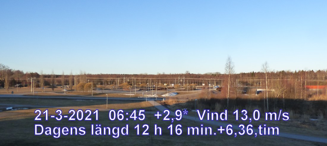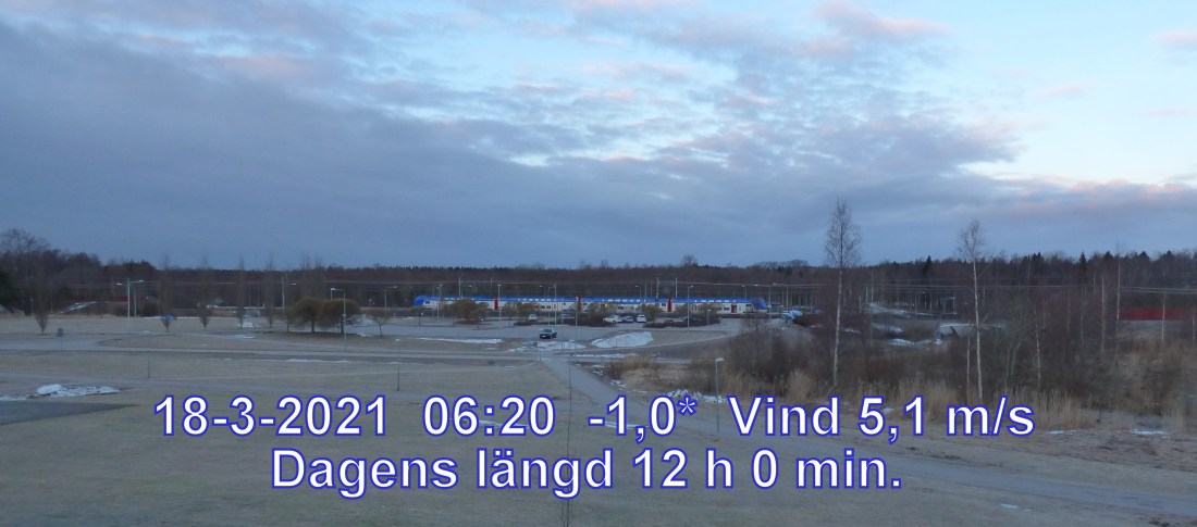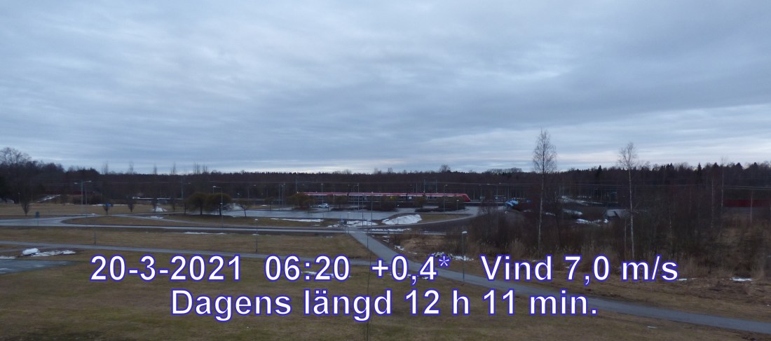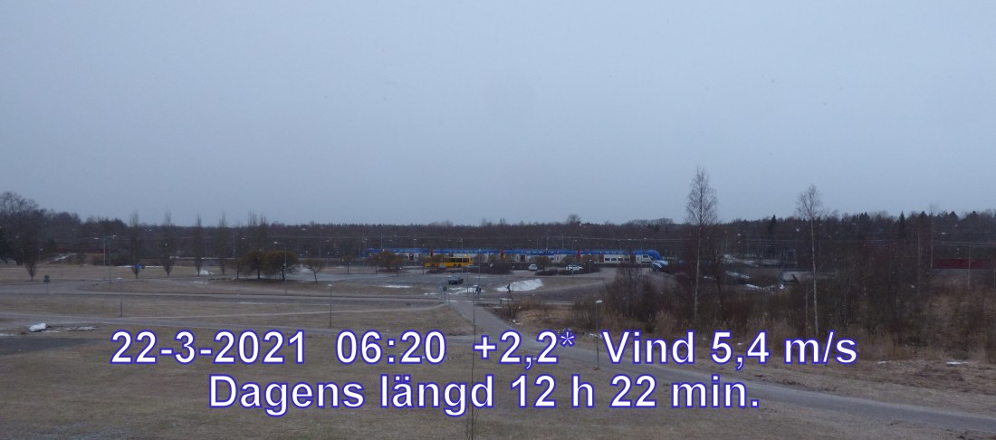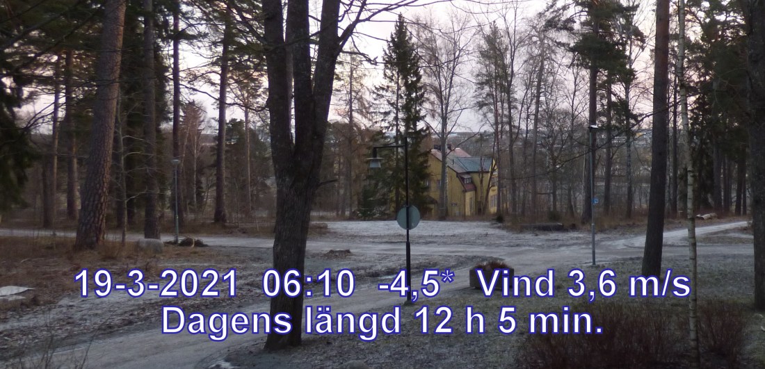 +2 °C Vind 4,3 m/s Soluppgång 05:43 Solnedgång 18:11 Dagens längd 12 h 28 min.