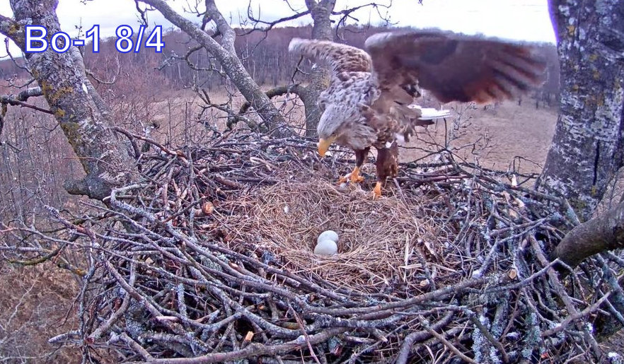 Kollade Örnbona i morse,det är bara i Bo 1 som det händer något,örnparet sköter om de 2 äggen varsamt,turas om att ruva.