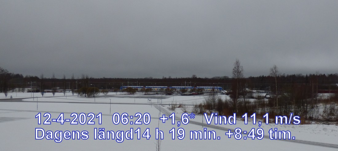 +1 °C Vind 11,1 m/s Mulet och regn Soluppgång 05:42 Solnedgång 20:01 Dagens längd14 h 19 min.