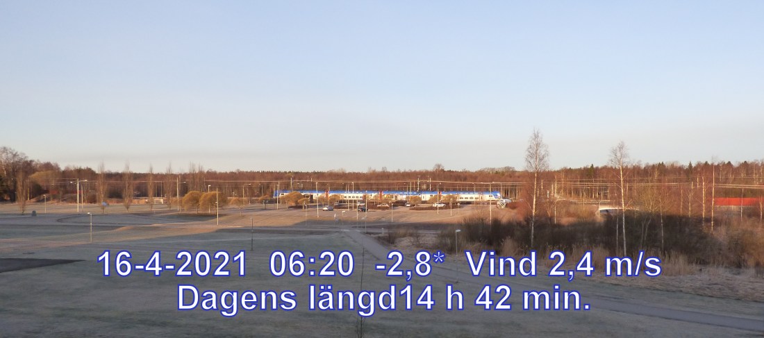 +2 °C Vind 2,4 m/s Mest klart och uppehåll Soluppgång 05:29 Solnedgång 20:11 Dagens längd14 h 42 min.