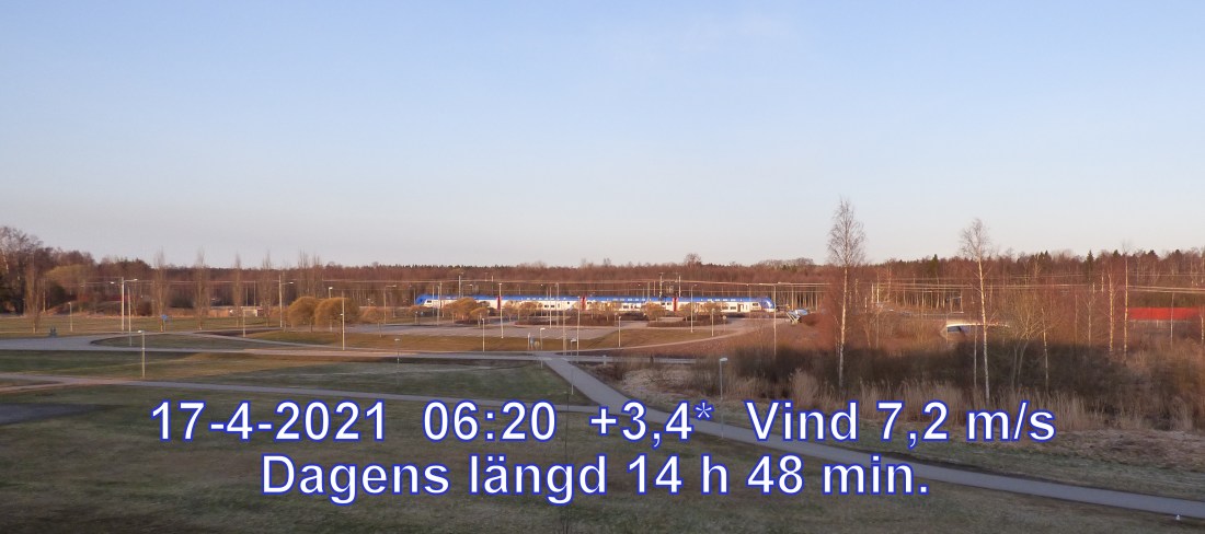 +3 °C Vind 7,2 m/s Mest klart och uppehåll Soluppgång 05:26 Solnedgång 20:14 Dagens längd 14 h 48 min.