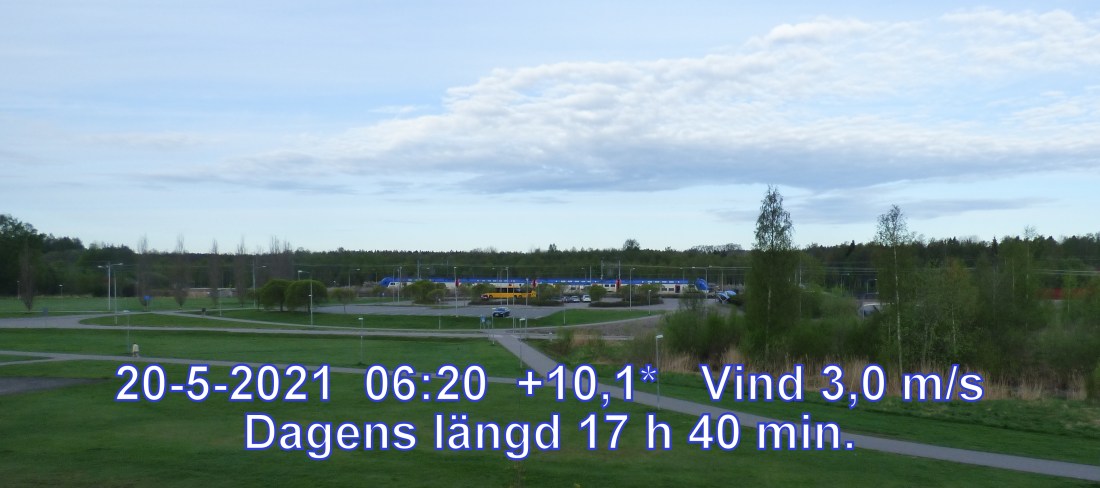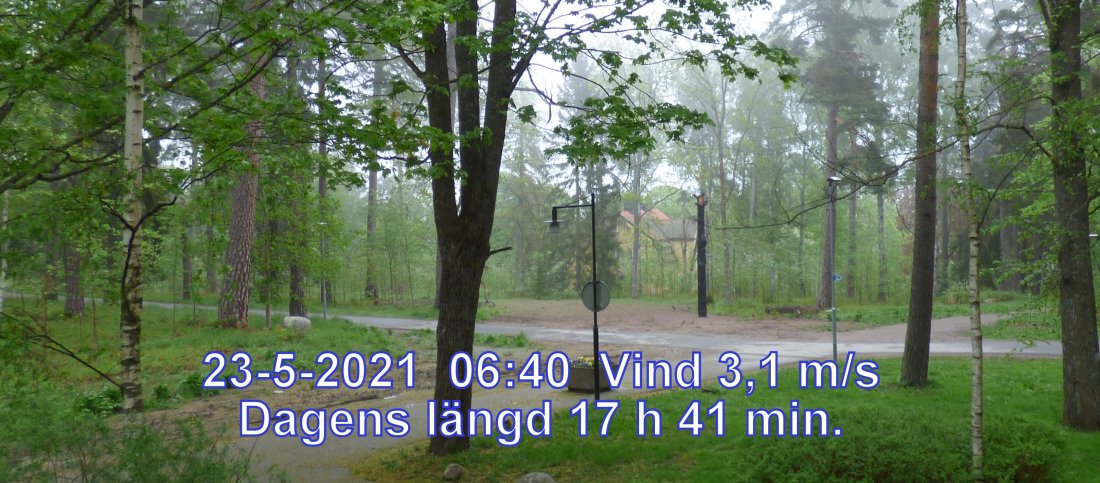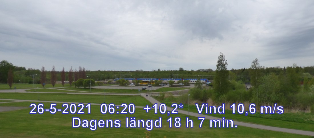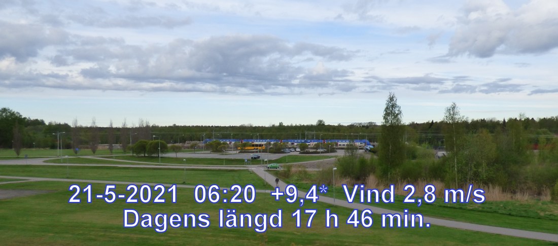 +9 °C Vind 3,0 m/s Känns som +7° Mulet, men troligen uppehåll Daggpunkt +8° Fuktighet 91.5% Soluppgång 03:57 Solnedgång 21:37 Dagens längd 17 h 40 min.