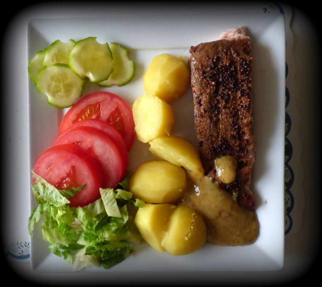 På tallriken blev det sallad,tomat,gurka,kokt potatis,hovmästarsås och en bit av laxen,smakade bra,,dagens intag av vitamin D är nu fyllt.