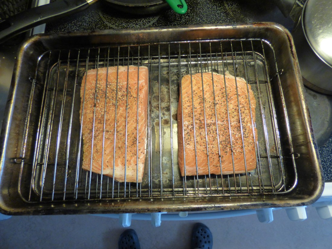 Maten idag blev den rökta laxen som jag fixade till igår,rökte 2 mittbitar av den laxsida jag köpte.