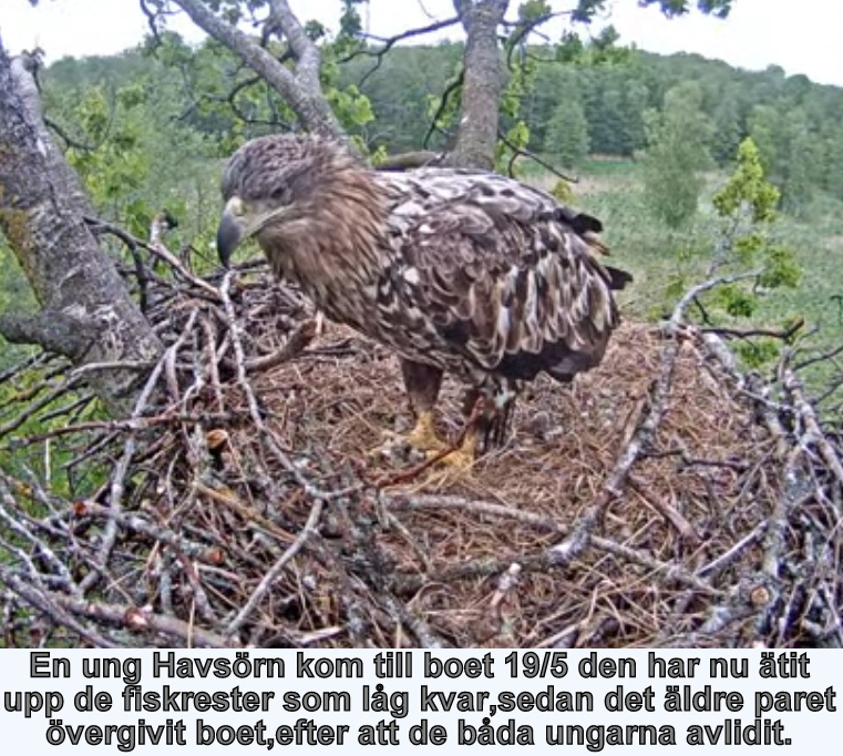 Efter några dagar med ruskväder även på andra sidan av Östersjön så blev det bättre väder även där,jag har kollat lite då och då,men inte sett att det hänt något..Havsörnsboet har varit tomt sedan den 21/5 då den unga Örnen käkade upp de rester som fanns..Webkameran i Gjusebo nr 1 sänder inte längre..Igår tyckte jag mig se en unge i Gjusebo nr 2,men var osäker..Idag så fick jag se att alla 3 äggen var kläckta hos Gjuse 2..Hos den vita Storken i Tyskland växer ungarna så det knakar..Och när jag kollade till den svarta Storken,så reste sig pappa stork upp och visst där hade det fötts en liten Storkunge.