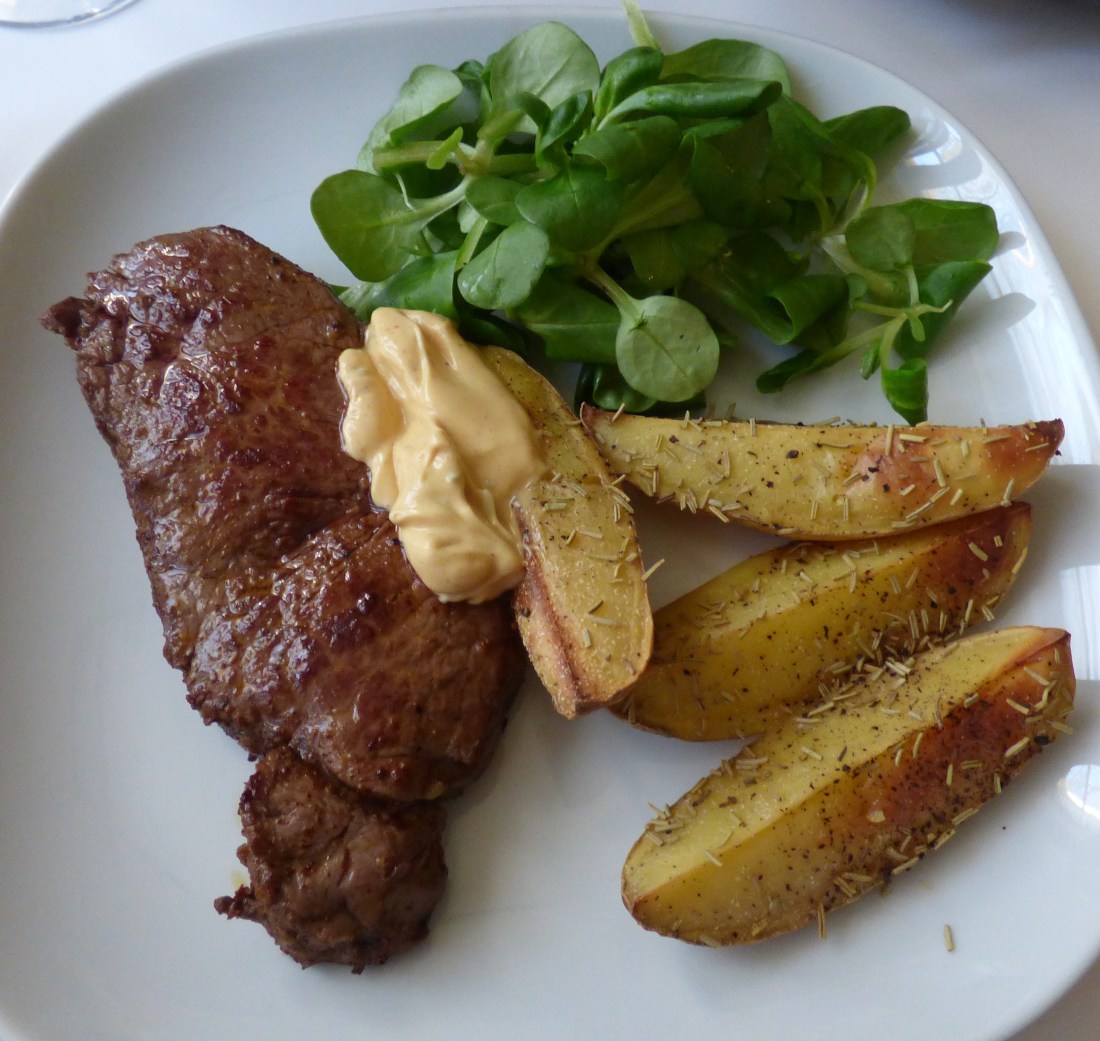 Det blev ryggbiff med ugnsrostad potatis,hickorybea och en röd Spanjor i glaset,,en riktig höjdare vill jag lova.Vinet i sig ingen höjdare bara sådär,men tillsammans med maten wow perfekt..