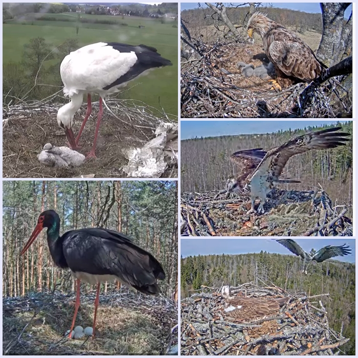 Inget dramatiskt har hänt i de fågelbon jag följer,den Vita Storken har 3 ungar framme 2 okläckta ägg..Den Svarta Storken sköter om de 4 äggen i boet..Havsörnen har nu 2 små ungar att mata..I de båda Fiskgjusebona väntas på kläckning av det första äggen..