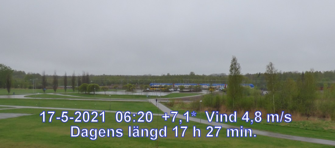 +6 °C Vind 4,8 m/s Mulet och regn Känns som +2° Daggpunkt +5° Soluppgång 04:03 Solnedgång 21:30 Dagens längd 17 h 27 min.