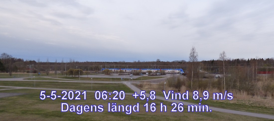 +5 °C Vind 8,9 m/s Känns som +0° Mulet, men troligen uppehåll Fuktighet 73.2% Soluppgång 04:34 Solnedgång 21:00 Dagens längd 16 h 26 min.
