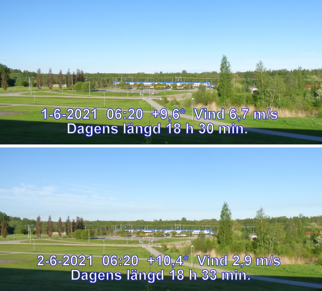 Tycker hon Ja,,men nu ska vi kolla på några små detaljer som skiljer bildera åt.. 1) Tågets position är inte densamma..2) Den gula bussen står i ett annat läge.. 3) Bilarna på parkeringen är inte samma,,4) Vinden syns tydligt i björkarna.. 5) Kollar man noga så ser man lite tunna molnslöjor på dagens bild..