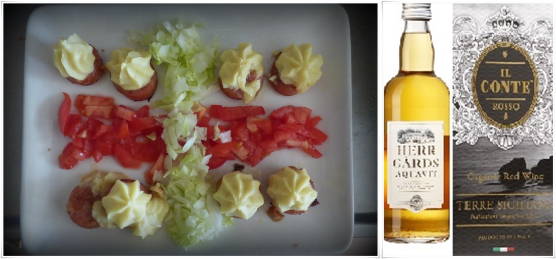 Var ju ute och for runt lite på förmiddagen,när jag sedan kom hem och fundrade till på vad ska jag äta idag,hade inte förberett något..Tittade i frysen,vad tinar snabbast? där låg 2 st tjocka grillkorvar,oki dom tar jag.Lade påsen i ett vattenbad och efter en knapp timme var dom hanterbara,skivade korven i cm skivor,på med lite chilipulver sedan in i ugnen.Under tiden rörde jag ihop lite pulvermos,med 1 ägg,lite parmesan,efter ca 10 min tog jag ut korven ur ugnen,klickade på lite Johnnys senap på varje korvsnutt spritsade sedan på lite av moset,in i ugnen igen 10-12 min.Lite grönt på tallriken också.Enkelt men gott,,kan ju ha berott på tillbehören också kanske,en nubbe Herrgårdsakvavit och i större glaset en röd från Cicilien I´l Conte..Njuter faktiskt än efter 1 tim.