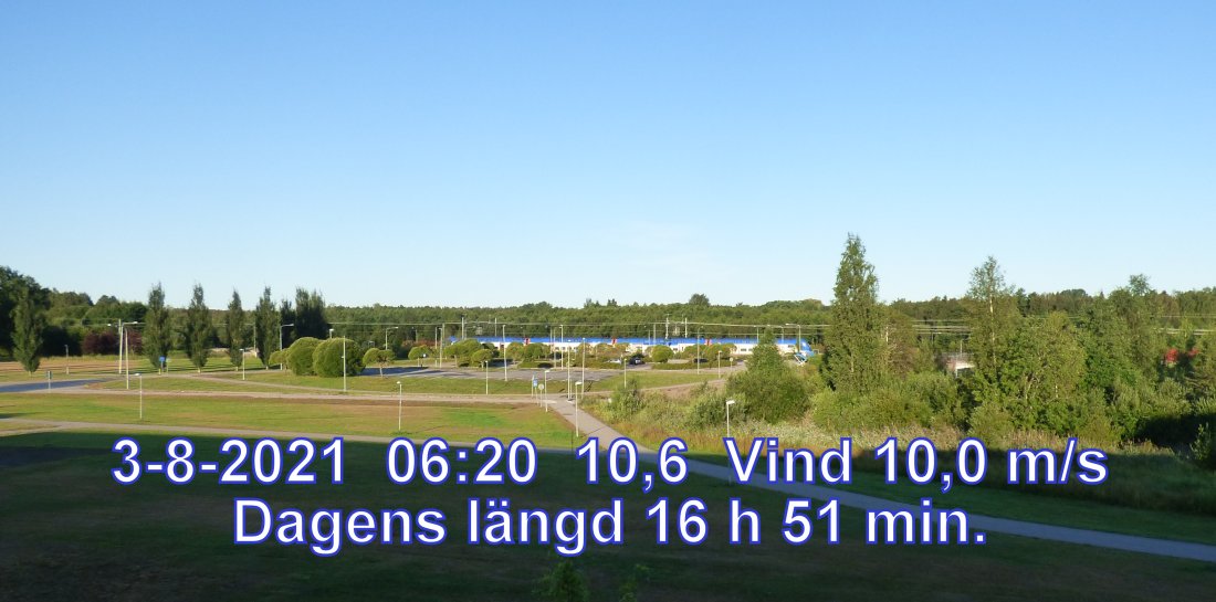 +14 °C Vind 10,0 m/s Mest klart och uppehåll Känns som+11° Fuktighet 74.2% Soluppgång 04:30 Solnedgång 21:21 Dagens längd 16 h 51 min.