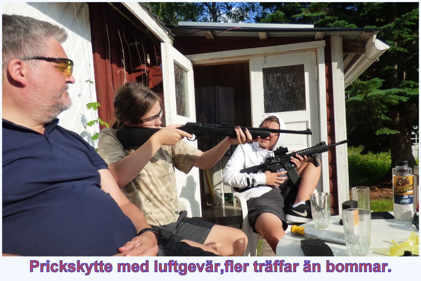Jag körde ju upp söndagen den 25:e.Sonen och barnbarnen kom upp på em måndagen den 26:e..Sonen greppade röjsågen på tisdagen och slog gräset runt stugan..Moa gick på mineraljakt hon fann några fina stenar..