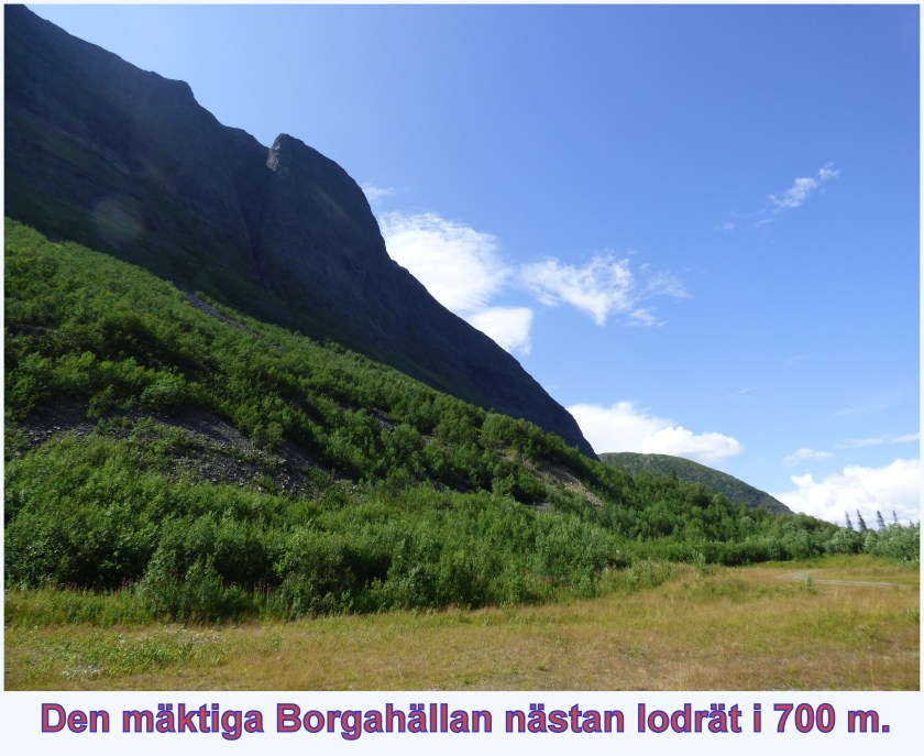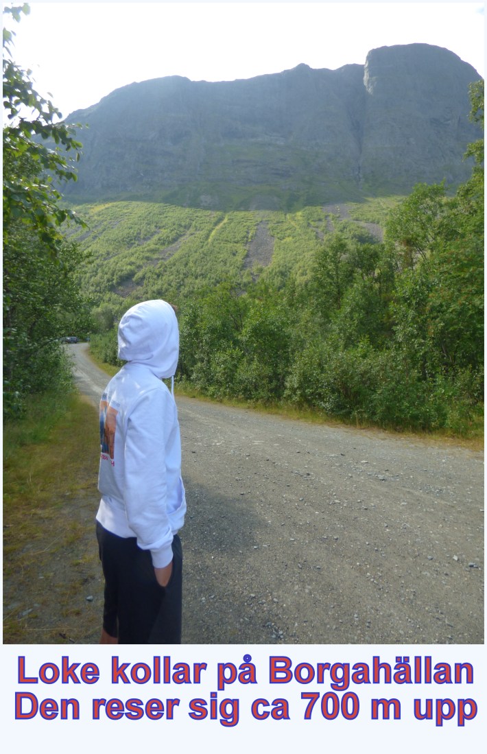 Onsdagens utflykt blev ju ett besök i Vilhelmina och nästa tripp blev Borgafjäll (sydsamiska Båargese),på torsdagen,ca 7 mil mot nordväst..Ett besök till Borgahällan Den kännetecknas av den väldiga klippväggen som är ca 700 m hög..Vi käkade lunch på Johannas i den jättelika Kåtan..Jättefin miljö,men maten är inget man behöver skriva hem om..När vi körde hem till stugan hamnade vi ett våldsamt regnväder,häftigt men varade inte länge.Tömde regnmätaren vid stugan,bara 11 mm,så det mesta av regnet gick nog förbi.