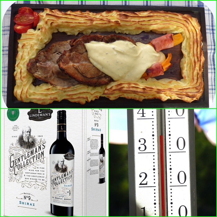 Jag bestämde ganska tidigt vad jag skulle äta idag,hade också bestämt att jag skulle sitta ute..Sagt o gjort maten blev Carré på planka med skinkrullad paprika och bea,i glaset den goda Gentlemannen från Australien..Men rackarns så varmt det var trots att jag hade parasollet uppe.Har man bestämt så blir det så.